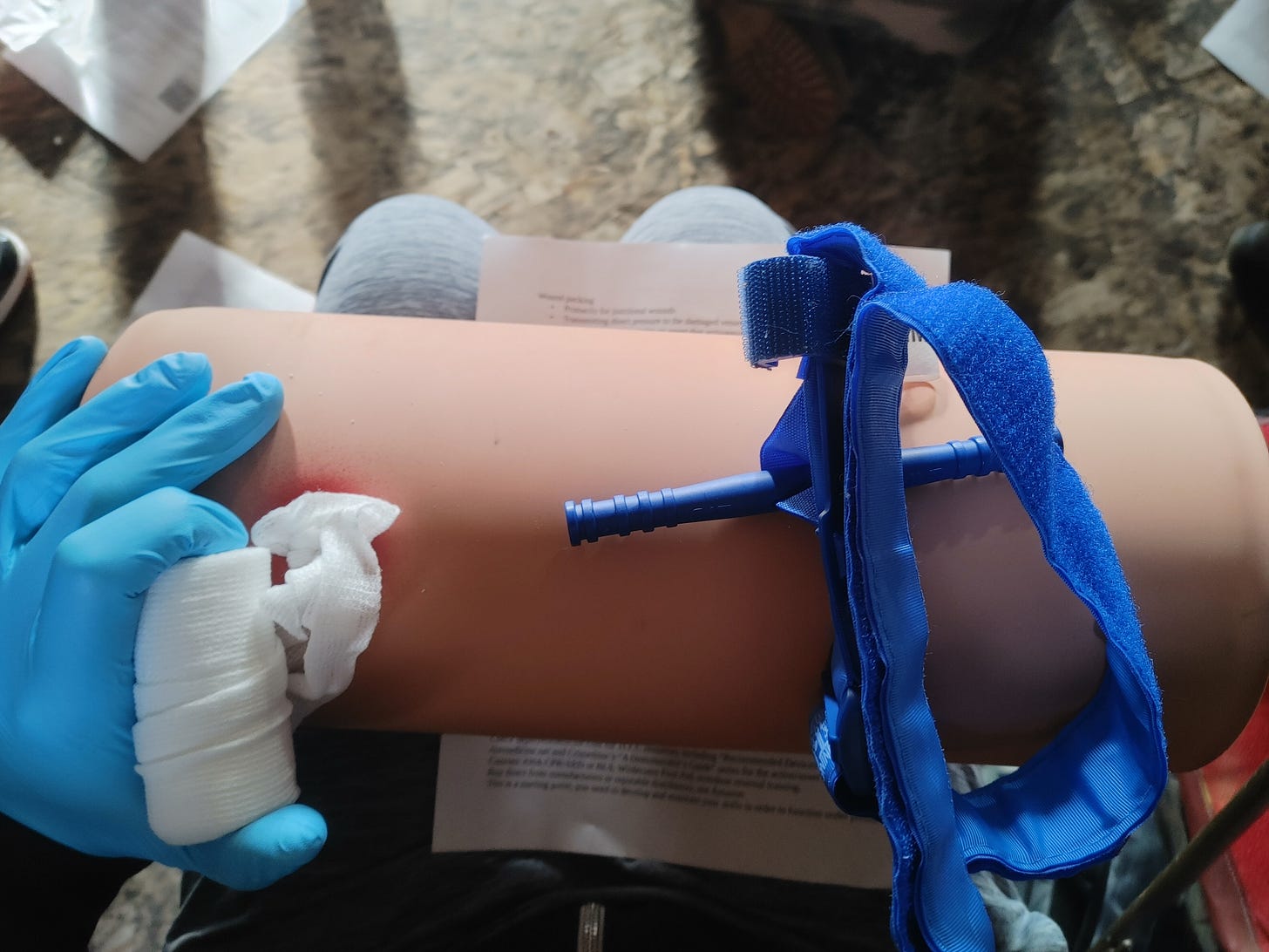 This past Saturday, I attended a Stop the bleed class, and got the basics on how to use a torniquet and wound packing techniques from a few EMTs. Prior to this class, my only real knowledge on this matter was from my dad torniqueting my leg with his shirt after a bicycle accident when I was 9 and healing from various body modifications. We got to practice a bit, and did timed trials where they said a limb/situation and we had to put a tourniquet on ourself. I've already started carrying narcan arround, and have been meaning to add a few things to a small bag to keep in my daily backpack, and this class helped a ton to give me the framework to help.