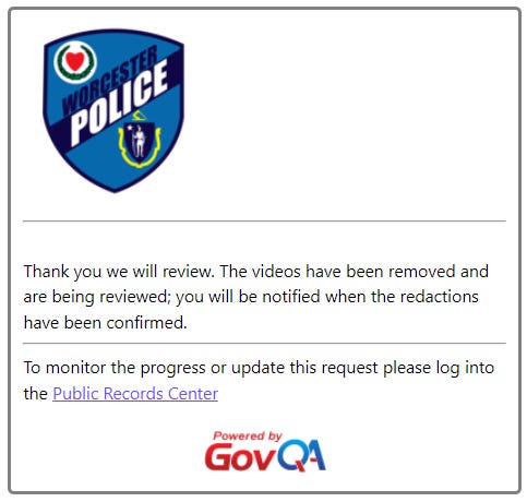 On a different note, I sent a respectful "hey, we're past the ten days are you going to send the responsive records" and the public records department said they would send them after a final review and then sent me bodyworn camera footage where someone's ID was entirely visible, and their financial information was audibly shared, but successfully edited it from another one of videos they provided. I'm not sure how large of a Oopsie that is on their end.