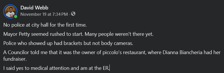 David Webb’s attack was more than an isolated incident; it was a symptom of a broader issue. It is part of the escalating rhetoric and dog whistles that encourage these actions. For weeks, we’ve been sounding the alarm about the implications of unchecked hate and intolerance. Councilor King petitioned for increased protections, only to be dismissed as overreacting. Last night’s attack underscores the validity of his concerns and the urgent need for action.