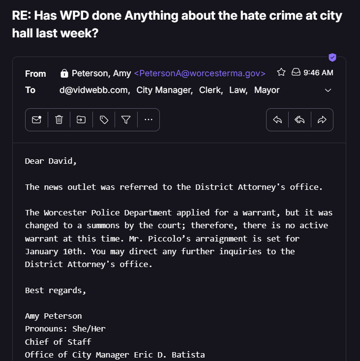 Let this be the moment when Worcester takes a stand. Let this be the moment when we say unequivocally that violence, intimidation, and hate have no place here. Anything less is unacceptable.