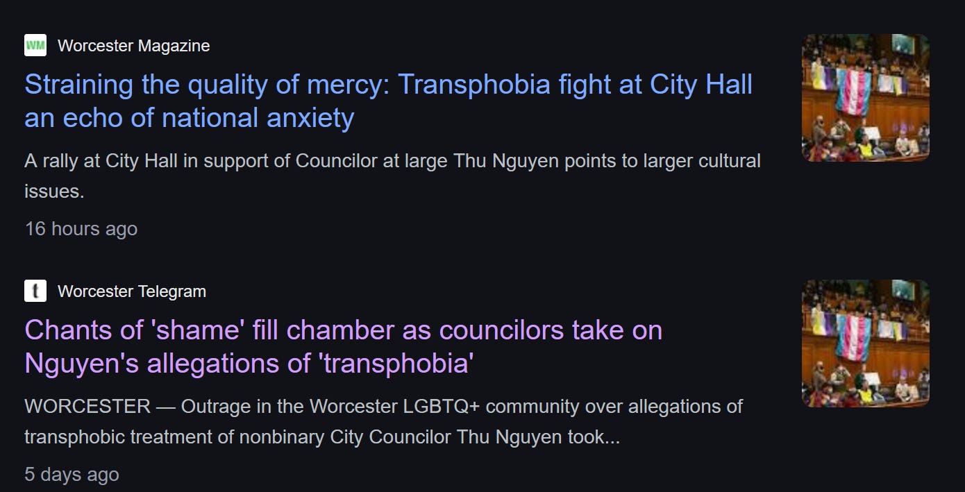 TLDR: Councilor Nguyen is taking a month hiatus due to transphobia in the workplace, namely being misgendered during meetings by Petty and Toomey, and the public is now hearing that Mero-Carlson has been calling them "It" behind closed doors.