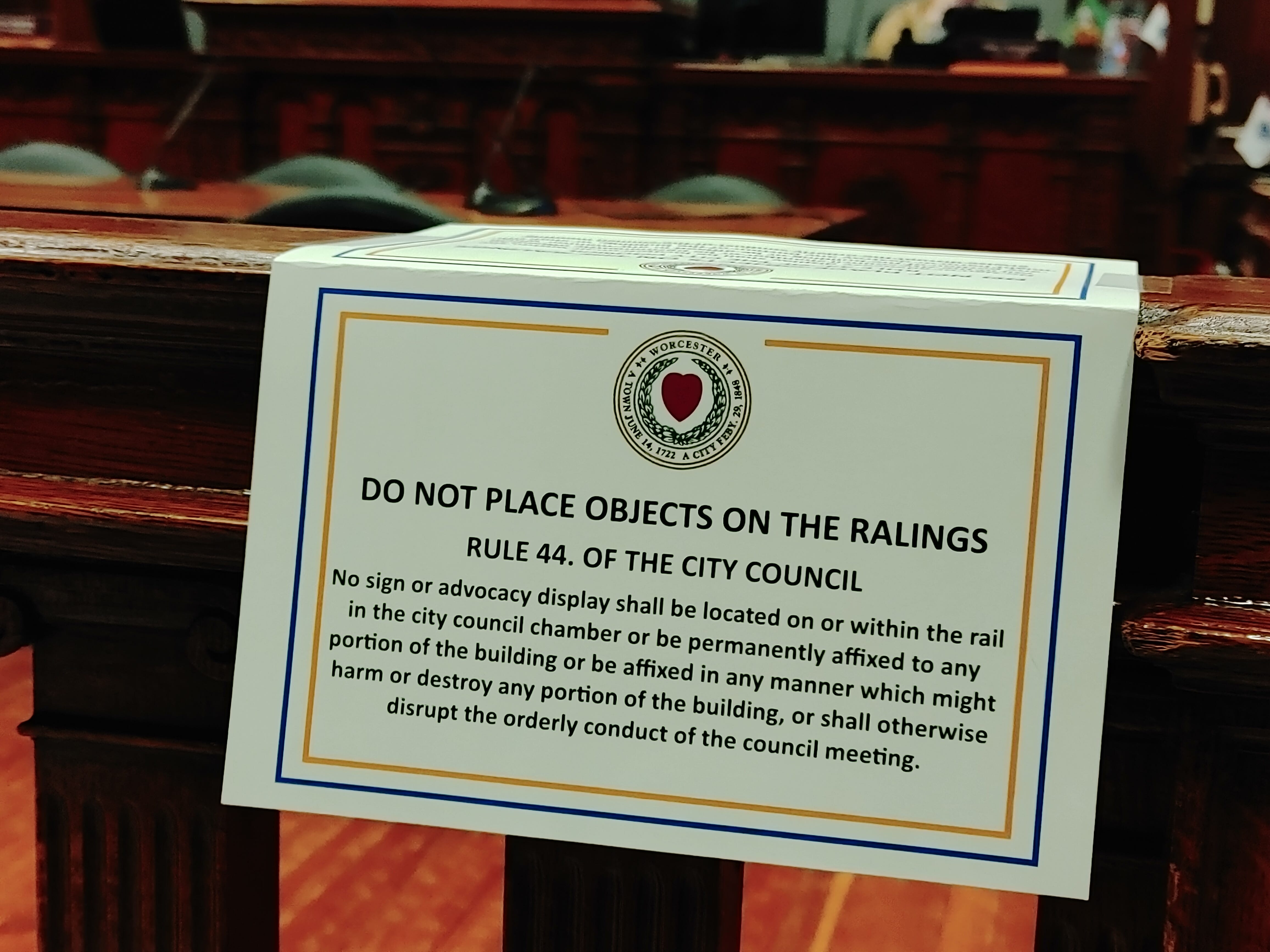 Now, I’m familiar with this one. Mayor Petty asked at the end of the June 25th city council meeting "I just ask that next week we not allow anything on the banisters... nothing be attached to anything in the council room" and that was pretty much directed at me. This was the nicer part of my response at the time.