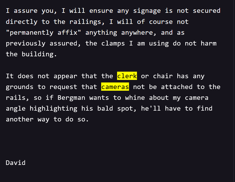 Now, generally speaking - the clerk hasn’t given a shit about that. I’ve tried. At one point I was sending regular emails like this, and they haven’t once actually announced it to the public. I’m assuming they think the paper notices are enough, and I guess it technically might be.